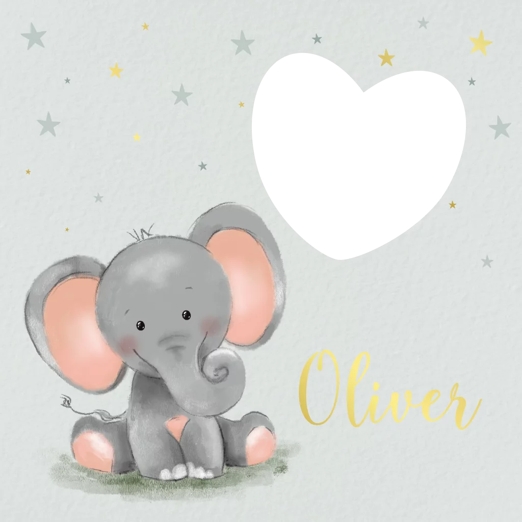 Geboortekaartje jongen met lief olifantje en hartjes doorkijkje