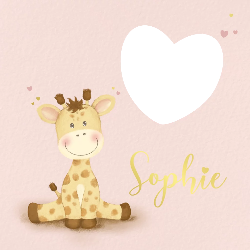 Geboortekaartje met lief girafje en hartjes doorkijkje - Sophie