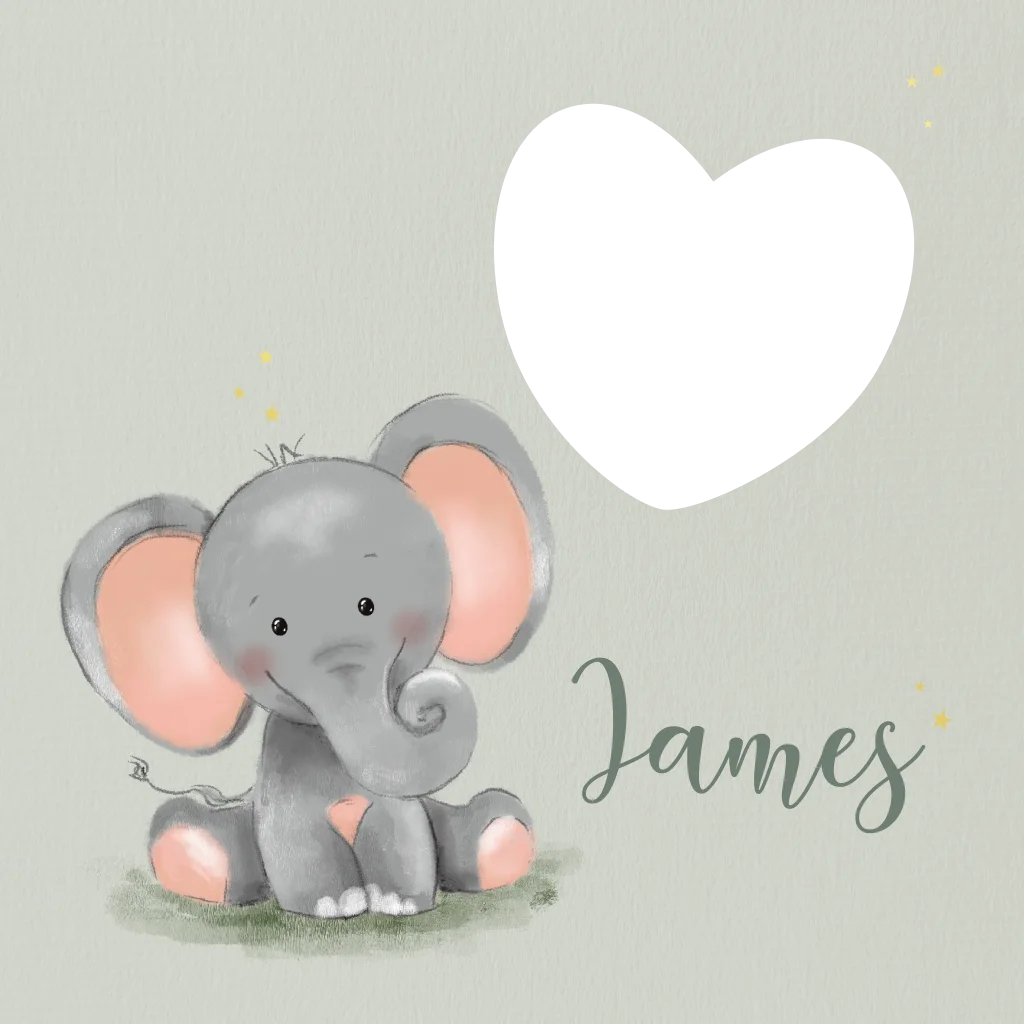 Een lief en rustig geboortekaartje met een schattig olifantje in zachte groentinten. Het uitgesneden hartje op de voorkant zorgt voor een bijzonder doorkijkje naar de binnenzijde, wat dit kaartje nét even anders maakt.