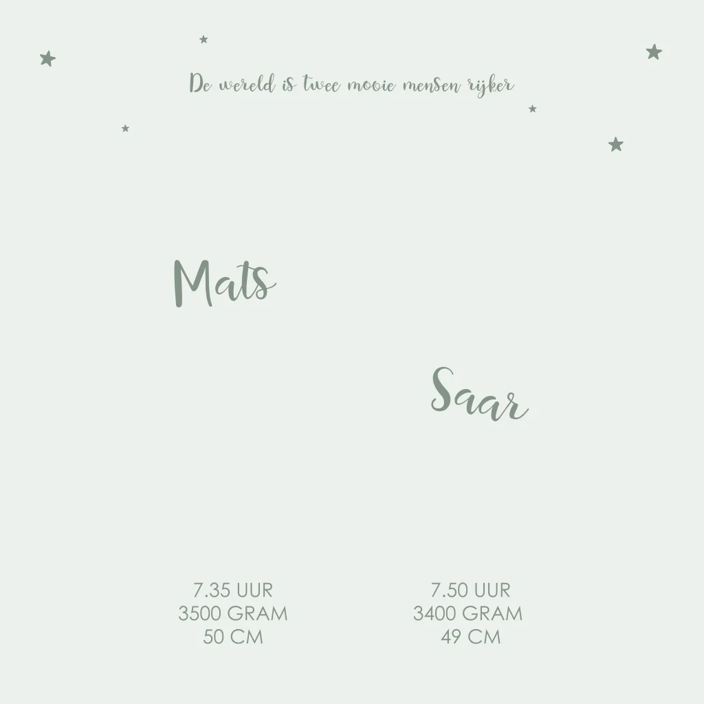 Op zoek naar een geboortekaartje voor een tweeling? Bekijk dit uniseks geboortekaartje in