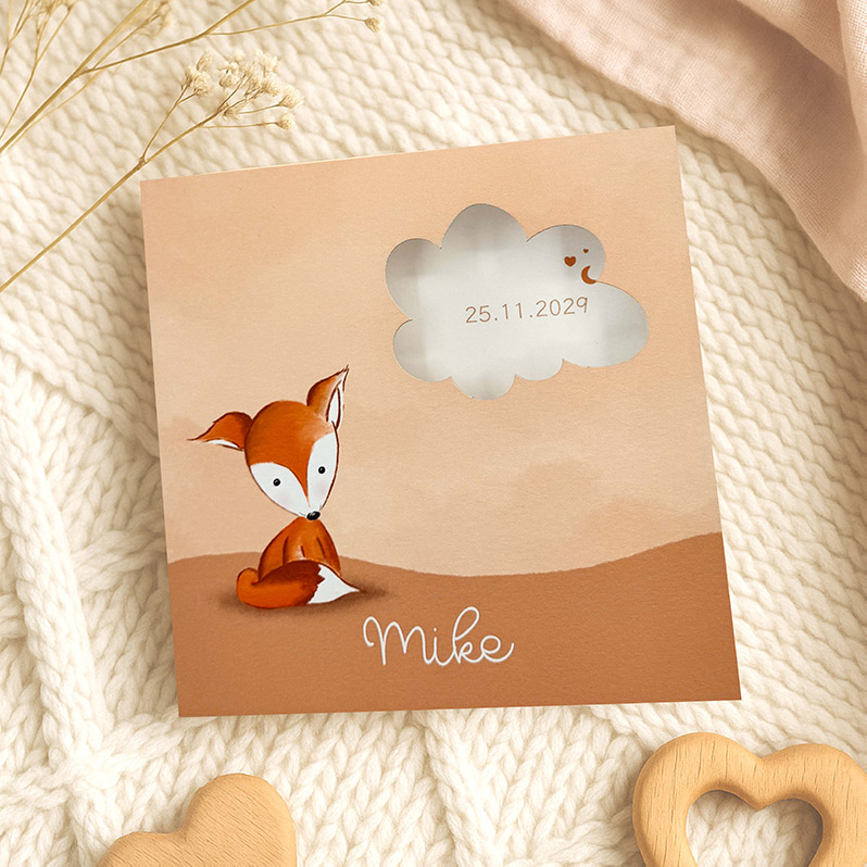 Geboortekaartje vosje met doorkijk wolkje - Mike