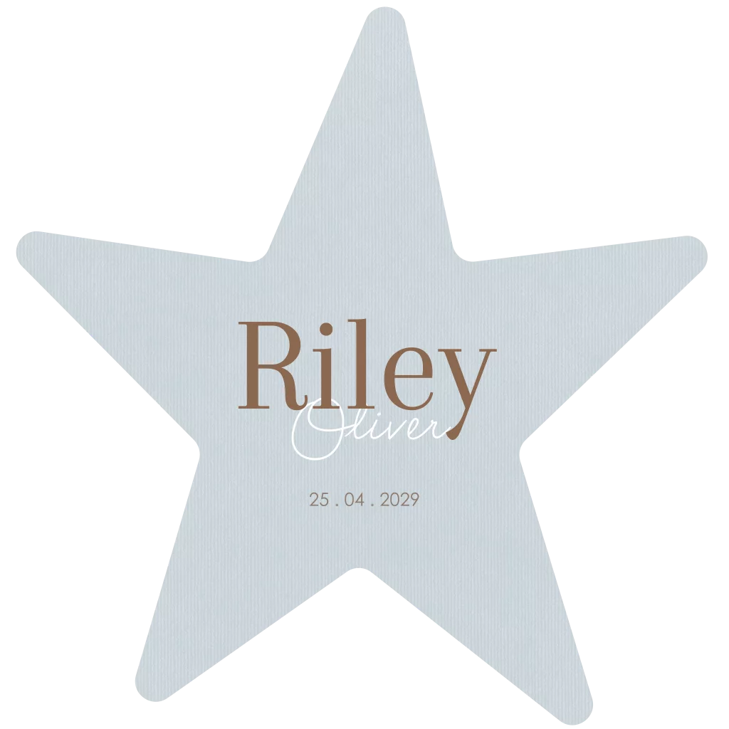 Minimalistisch geboortekaartje blauw stervorm – Riley Oliver