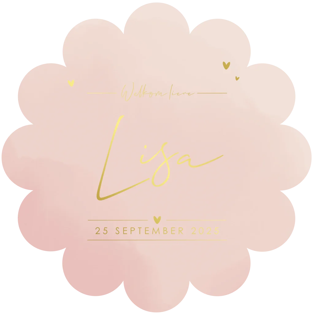 Origineel geboortekaartje meisje – Bloemvorm met goudfolie hartjes