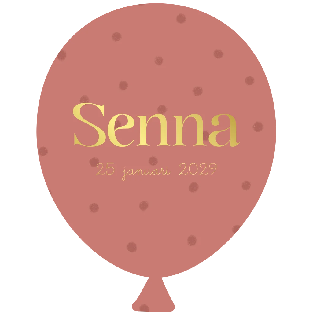 Uniek geboortekaartje ballon terra met stippen en goudfolie -Senna