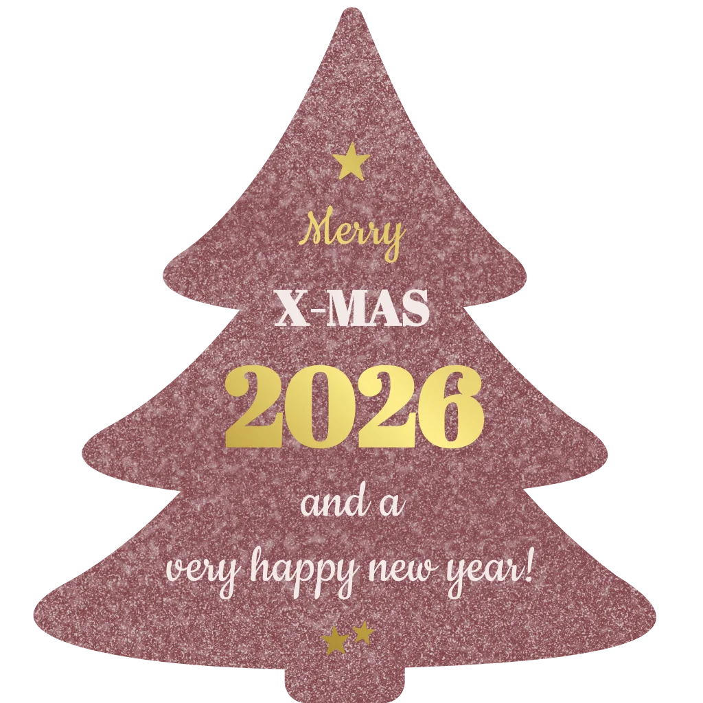 Laat je kerst- en nieuwjaarswensen schitteren met onze kerstboom-vormige kerstkaart voor 2026. Deze prachtige kaart is ontworpen in een elegante plumkleur met een sierlijk sneeuwpatroon, en wordt nog feestelijker gemaakt door de stijlvolle goudfolie bedrukking en de prominente 2024 in goudfolie. Je hebt de vrijheid om deze kaart volledig aan te passen aan je eigen wensen. Bovendien bieden wij de mogelijkheid om een proefdruk te bestellen, zodat je zeker bent van het resultaat. Bij de kerstkaart kun je kiezen uit vele stijlen en kleuren enveloppen.