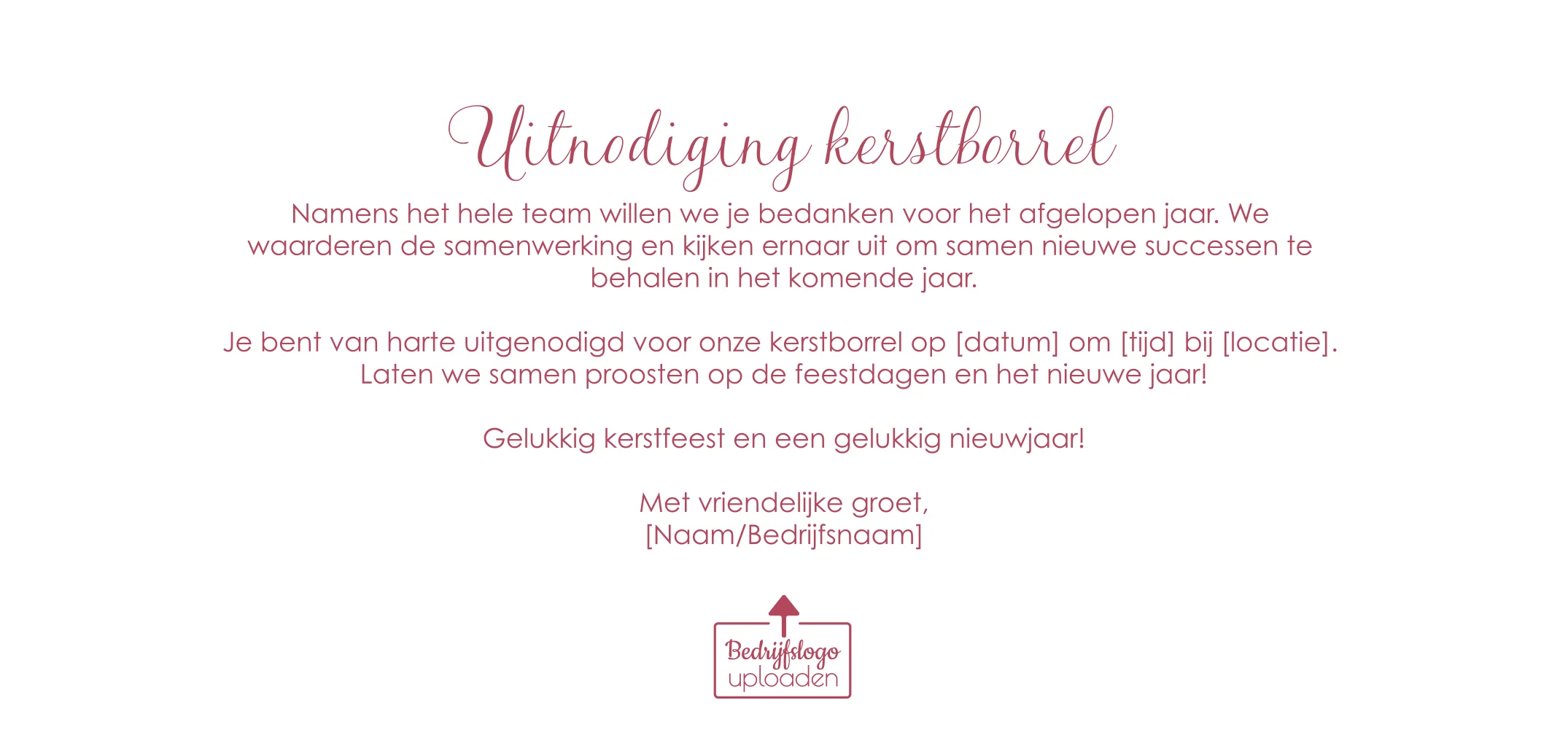 Nodig je personeel en zakenrelaties uit om de feestdagen te vieren met onze stijlvolle zakelijke kerstborrel uitnodiging! Deze uitnodiging in warme rode en roze tinten met elegante strepen is perfect voor een feestelijke gelegenheid.