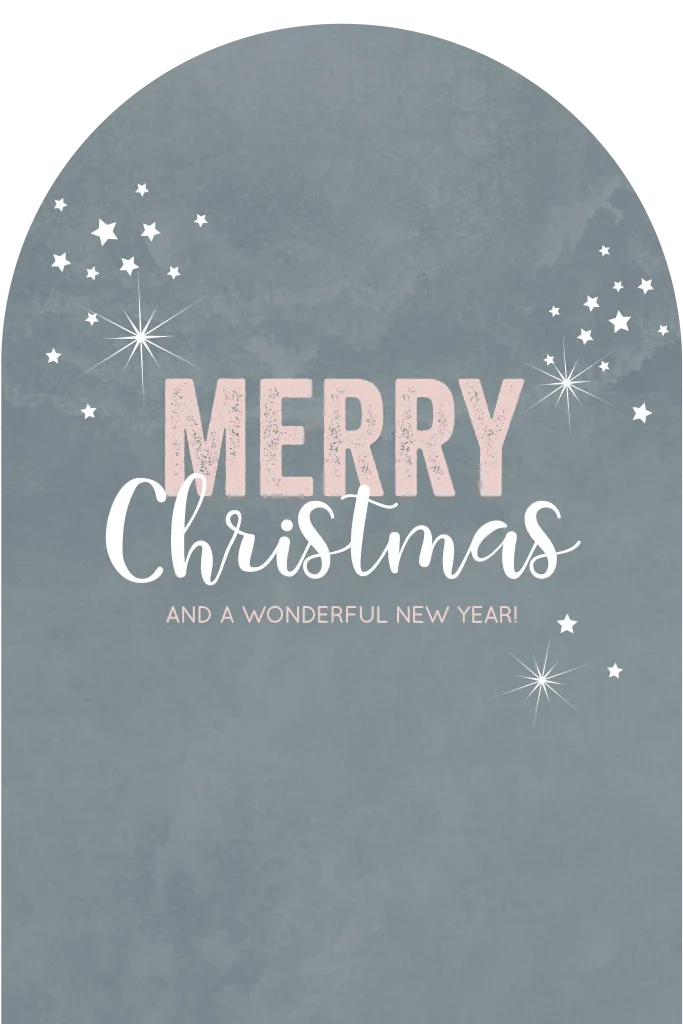 Trendy blauw-grijze kerstkaart met boogvorm en sterren