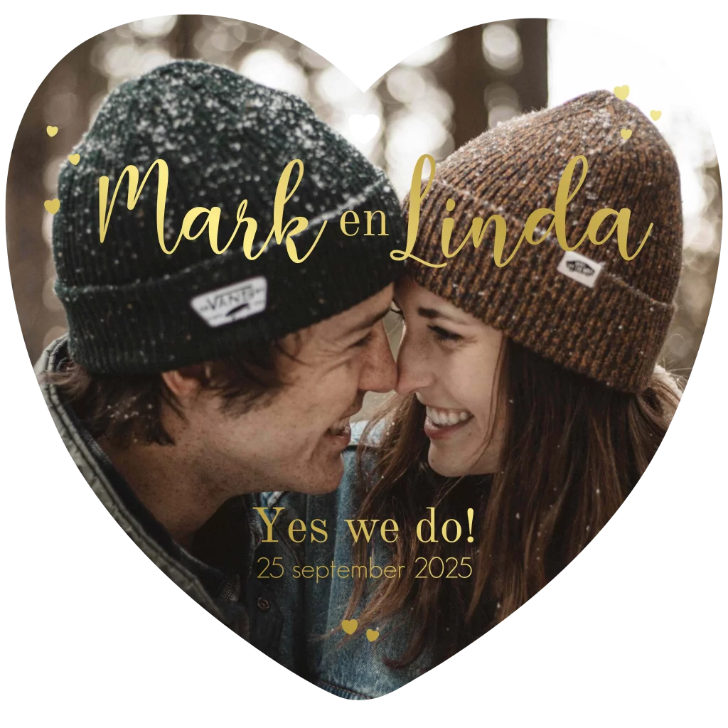 Pas de kaart naar wens aan en maak met unieke kaart jullie trouwdatum bekend aan familie en vrienden.