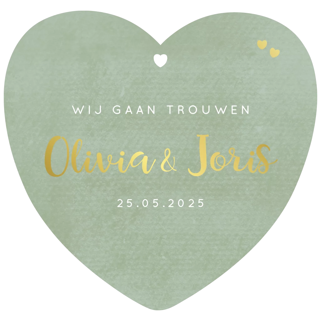 Hartvormige trouwkaart grijsgroen met goudfolie