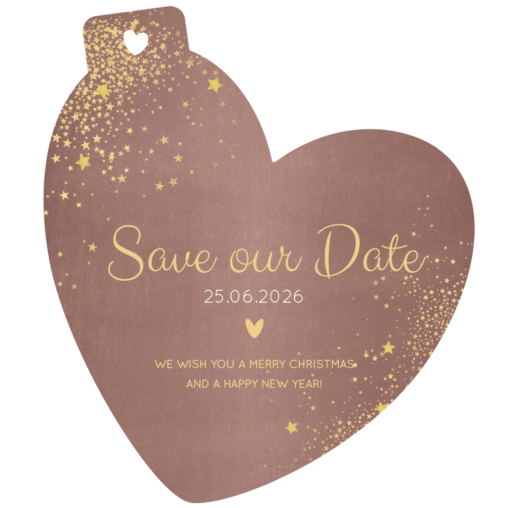 Pas deze bijzondere save the date kerstkaart naar wens aan en breng jullie familie en vrienden op de hoogte van jullie trouwdatum gecombineerd met een lieve kerstwens.