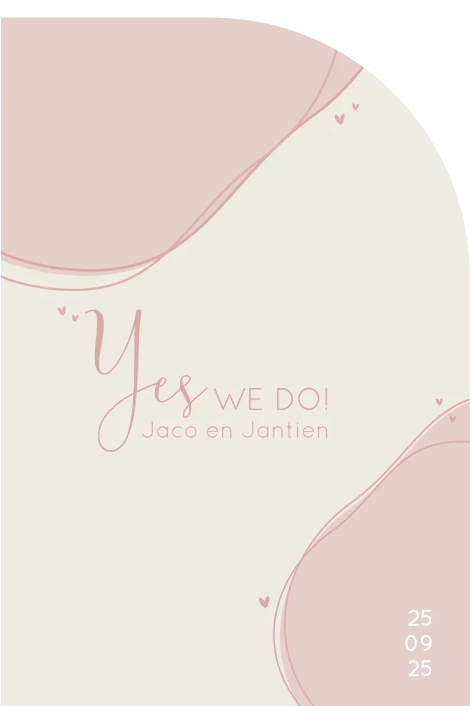 Hippe Trouwkaart met een originele vorm. Deze bijzondere kaart heeft een achtergrond met organische vormen in pasteltinten. Pas de kaart naar wens aan en nodig jullie familie en vrienden uit voor jullie huwelijksdag. ♡ Bestel eerst een proefdruk, zodat je kunt zien of jullie kaart naar wens is. ♡Verstuur je kaart in stijl in een mooie envelop naar keuze en plak deze dicht met een sluitzegel.