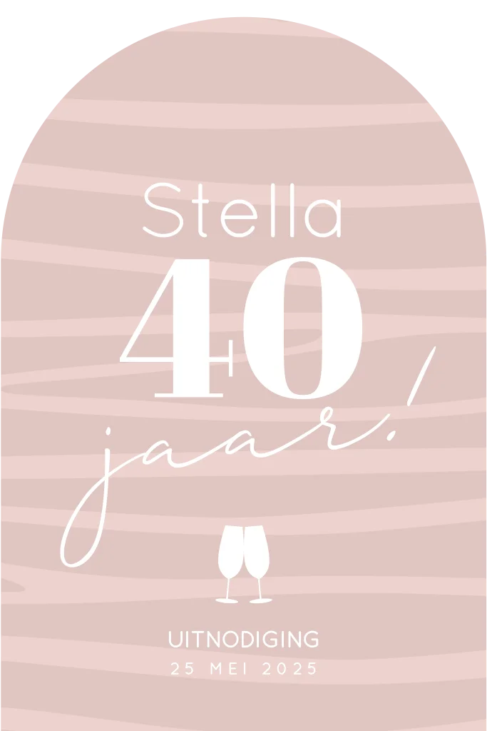 Bijzondere verjaardagsuitnodiging met een boogvorm. De achtergrond heeft een oudroze zebra print. Je kunt het getal 40 eenvoudig zelf aanpassen. Pas deze trendy uitnodiging naar wens aan en bestel een proefdruk om jouw uitnodigingskaart in het echt te bekijken!