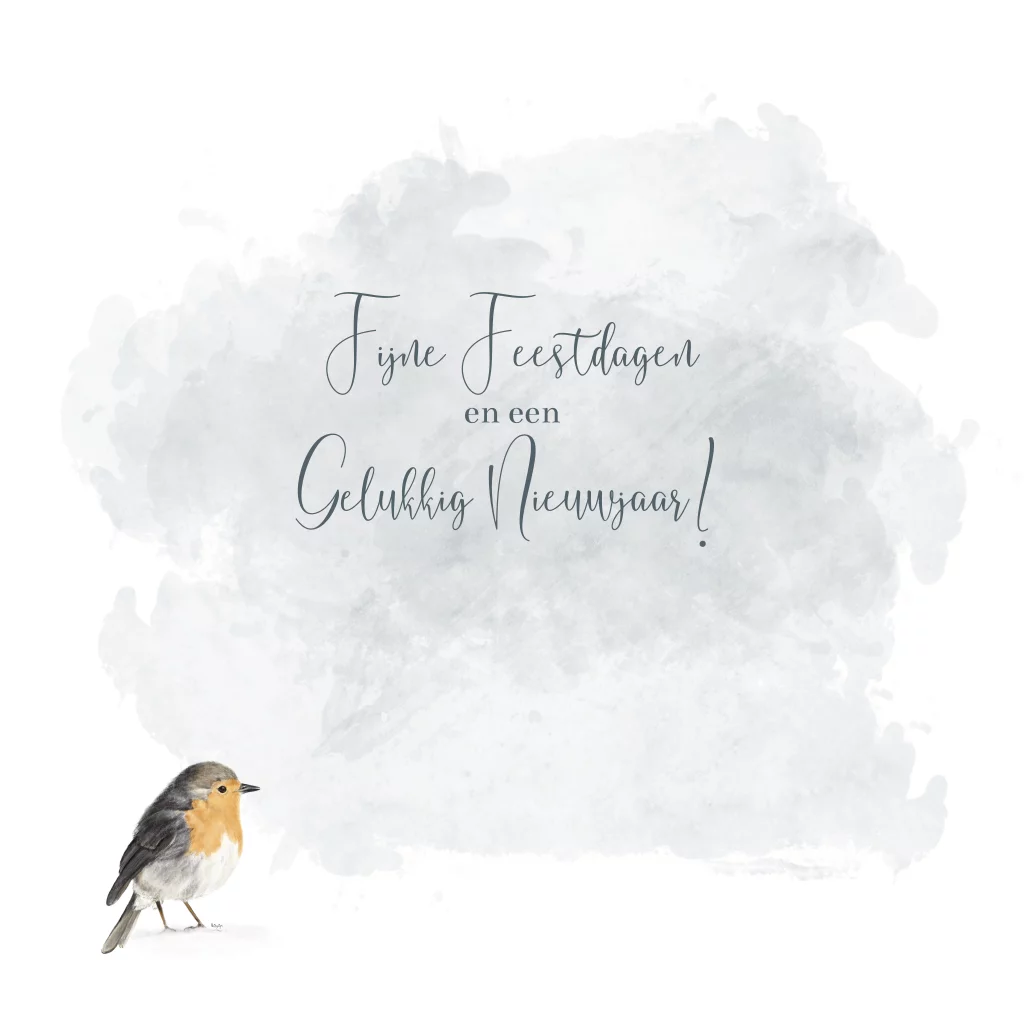 Winterse kerstkaart met een realistische tekening van een lief roodborstje in de sneeuw. Je kunt deze kerstkaart naar wens aanpassen. Kies een mooie envelop bij jouw kaart en verras familie en vrienden met deze mooie vogel kerstkaart in de brievenbus.
