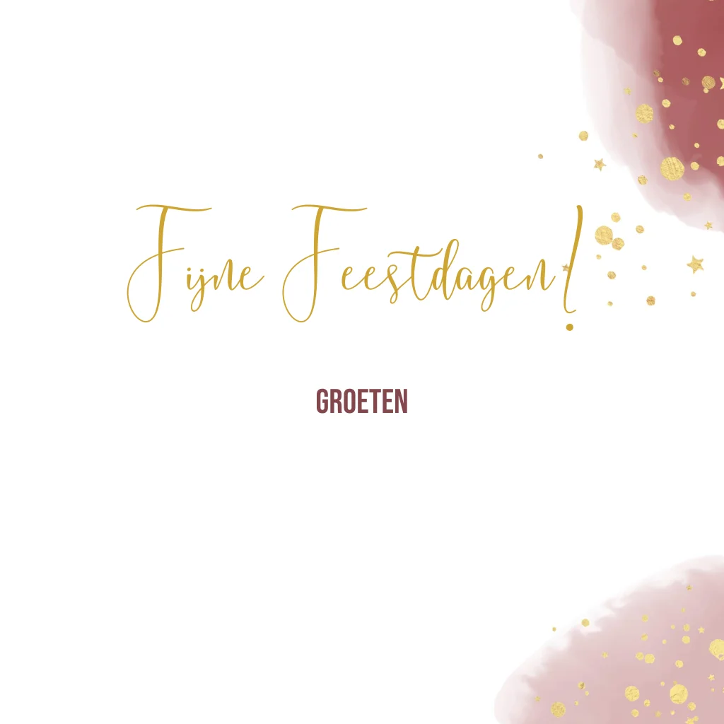 Maak indruk met onze zakelijke kerstkaart, waarbij de mogelijkheid bestaat om een bedrijfsnaam en logo toe te voegen. Het stijlvolle ontwerp kenmerkt zich door een prachtige bordeaux waterverf print en goudkleurige verfspetters. Personaliseer naar wens en bestel een proefdruk voor een perfect resultaat. Kies uit een selectie van mooie enveloppen om de kerstgroet extra bijzonder te maken. Ontdek nu de perfecte mix van professionaliteit en feestelijke elegantie voor jullie zakelijke kerstwensen.