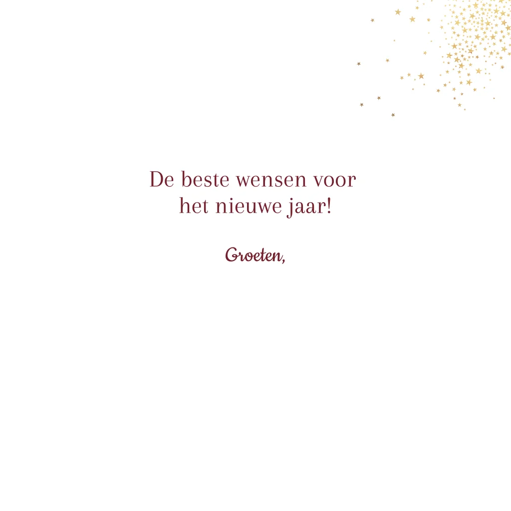 Deze stijlvolle zakelijke kerstkaart is perfect om klanten, relaties en medewerkers in stijl te bedanken voor de samenwerking in 2025. De diepe rode achtergrond en glanzende goudfolie kerstballen maken de kaart feestelijk en luxe, terwijl het jaartal 2026 alvast de beste wensen voor het nieuwe jaar uitstraalt. Deze kaart heeft een mixt van goudkleurige en goudfolie sterren.