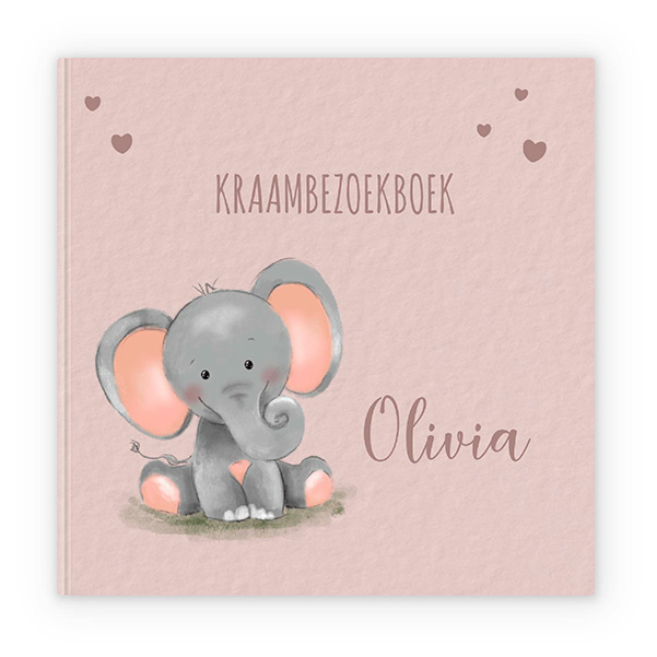 Kraambezoekboek roze met schattig olifantje en hartjes