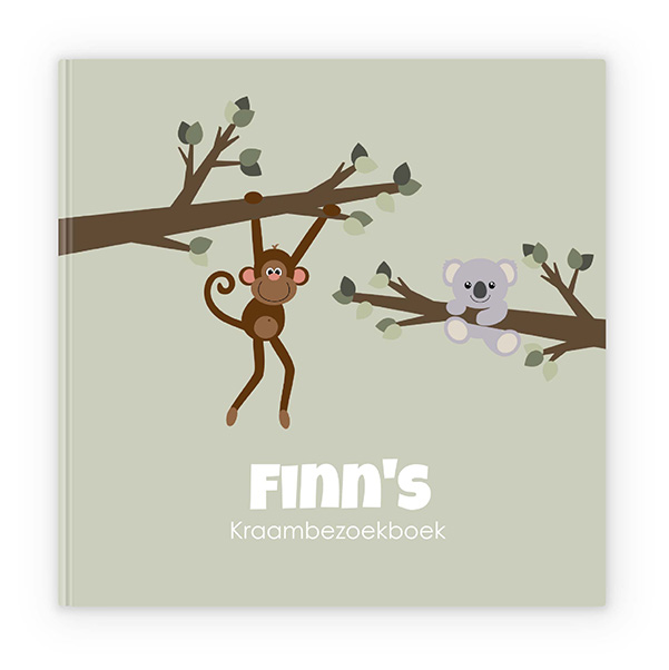 Lief kraambezoekboek met aapje en koalabeertje personaliseerbaar