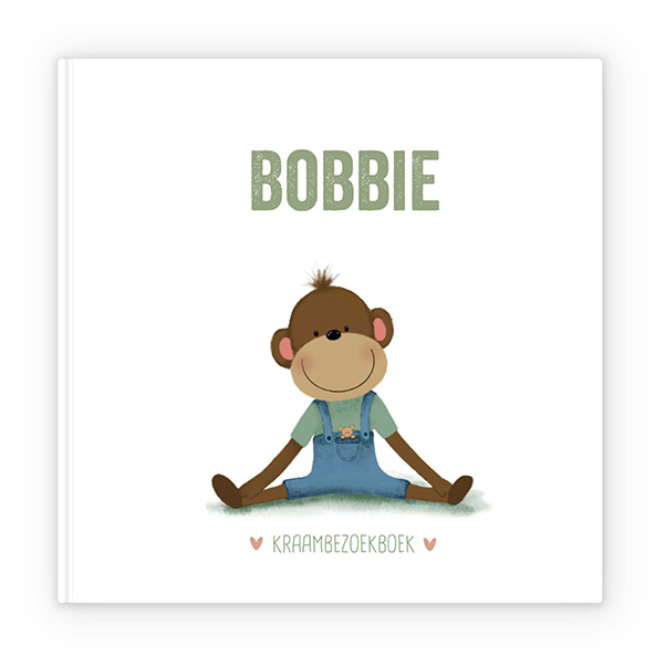 Schattig kraambezoekboek met schattig aapje – personaliseerbaar