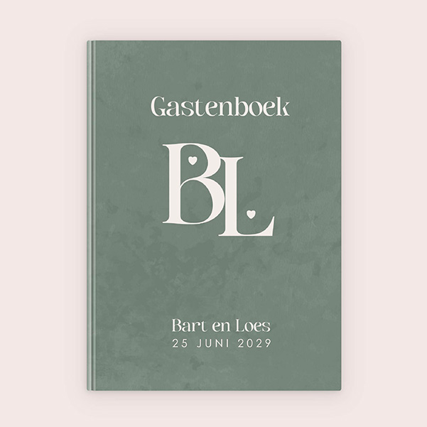 Bewaar de mooiste herinneringen van jullie trouwdag in dit elegante Sturdy Green gastenboek. De vergrijsde groene tinten en fluweelachtige structuur geven het boek een luxe en verfijnde uitstraling, perfect passend bij een moderne en stijlvolle bruiloft. De voorzijde kan volledig gepersonaliseerd worden, bijvoorbeeld met jullie initialen of namen, waardoor het een uniek en persoonlijk aandenken wordt.
