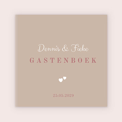 Stijlvol bruiloft gastenboek in bruin-roze tint met datum