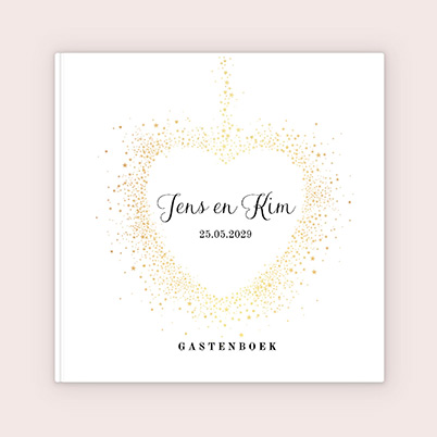 Stijlvol bruiloft gastenboek met goudkleurig sterrenhart