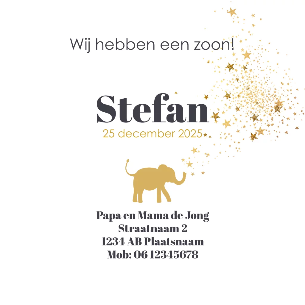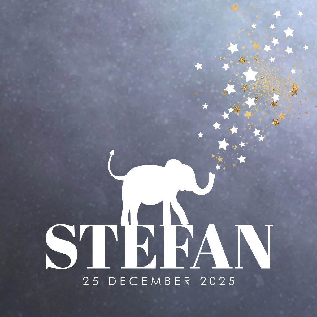 Geboortekaart sterrenhemel goudfolie olifantje Stefan