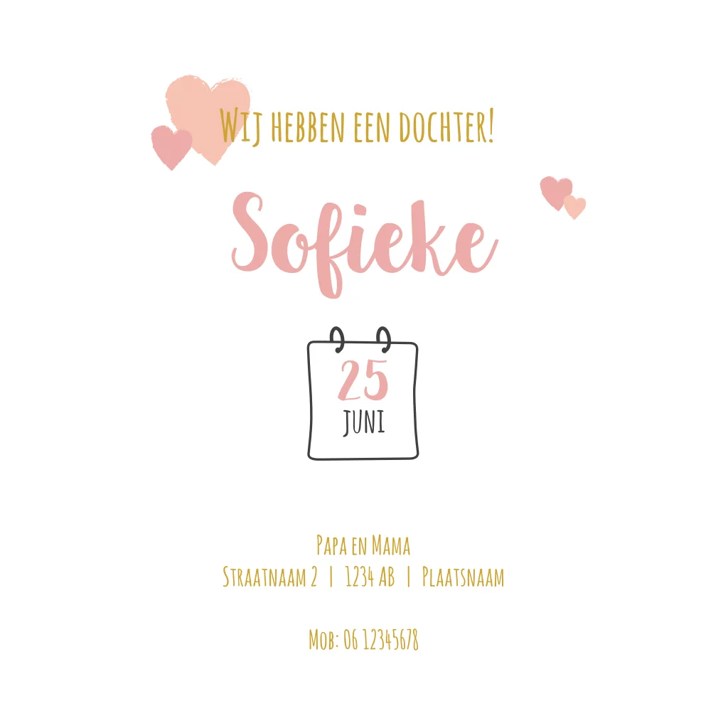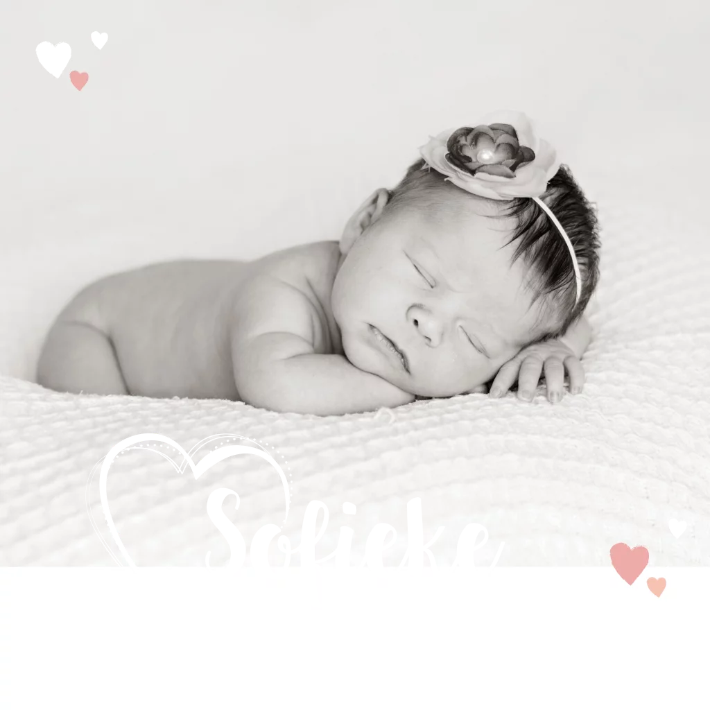 Hippe geboortekaart met eigen foto en goudfolie hartjes Sofieke