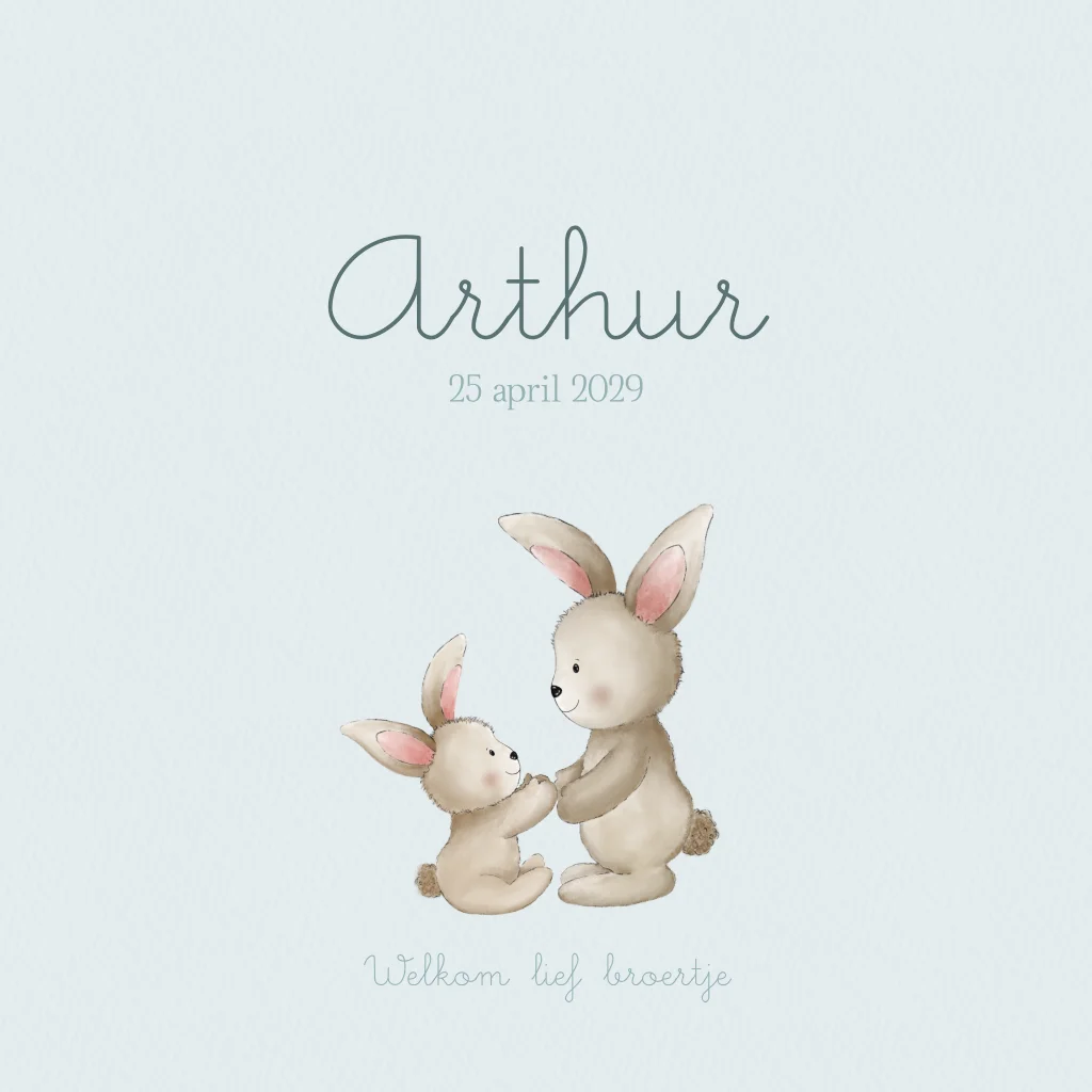 Geboortekaartje broertje zacht blauw met konijntjes - Arthur
