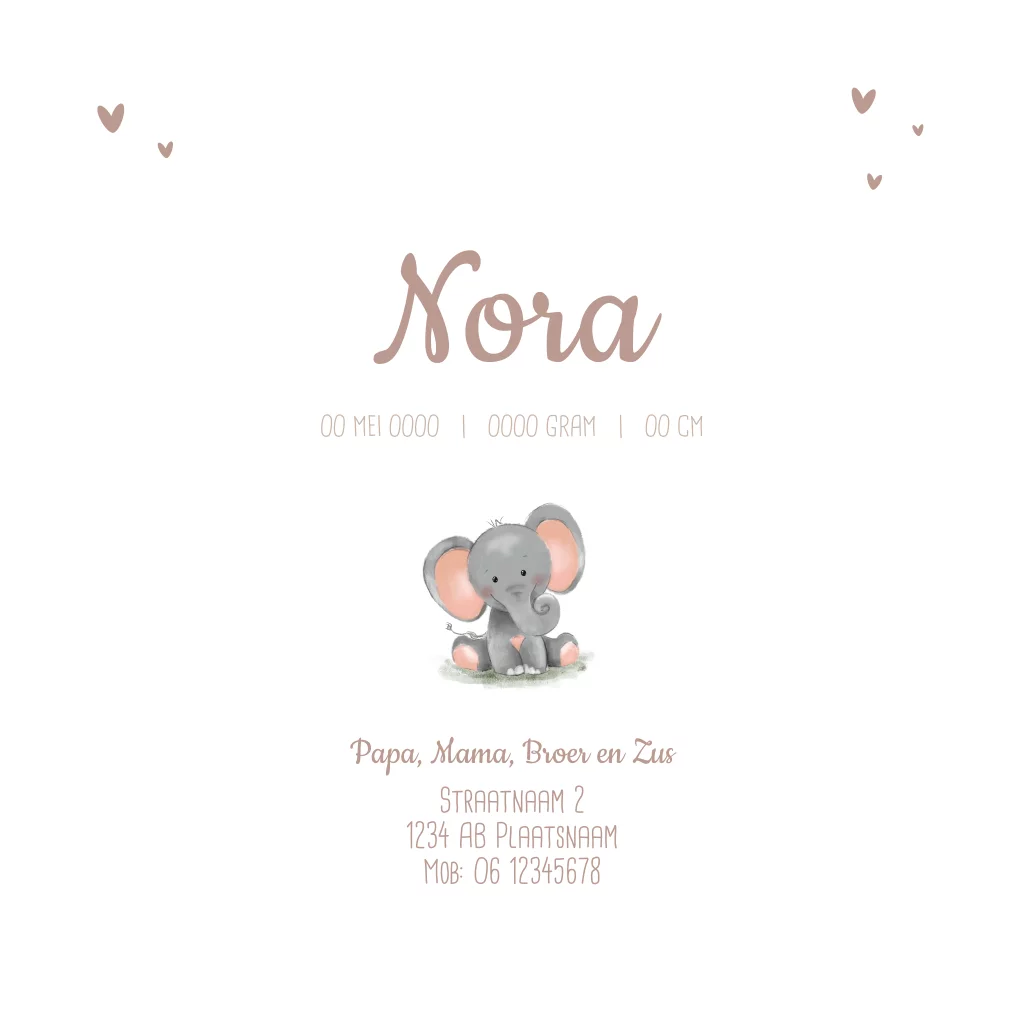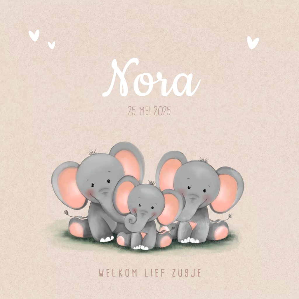 Geboortekaartje meisje met drie olifantjes voor een derde kindje