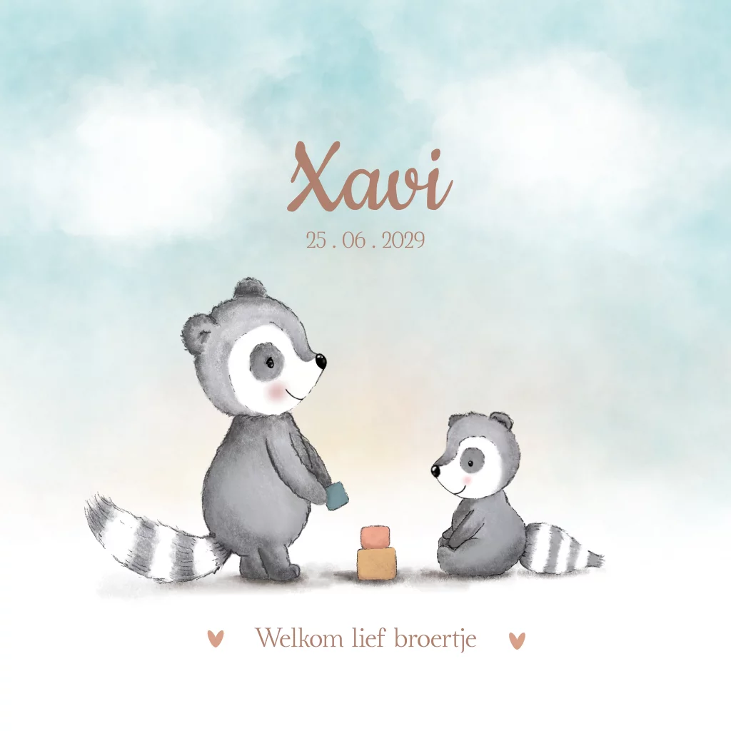 Laat jullie tweede kindje stralen met dit schattige geboortekaartje, waarin broeder- of zusterliefde centraal staat.