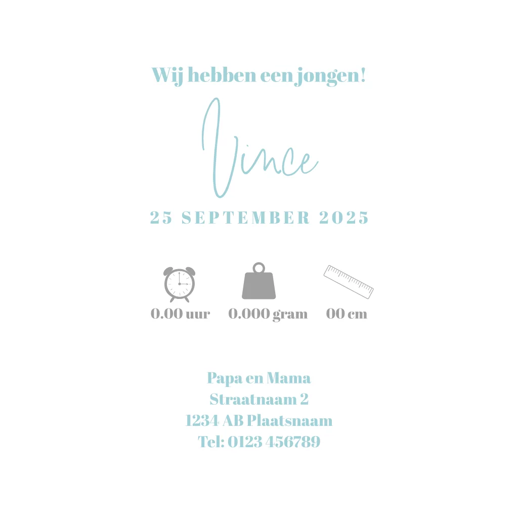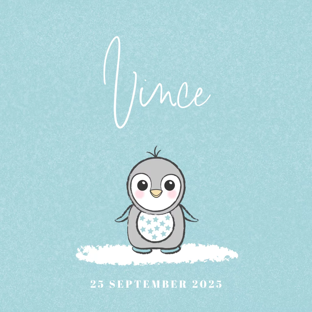 Geboortekaart jongen pinguïn in de sneeuw Vince