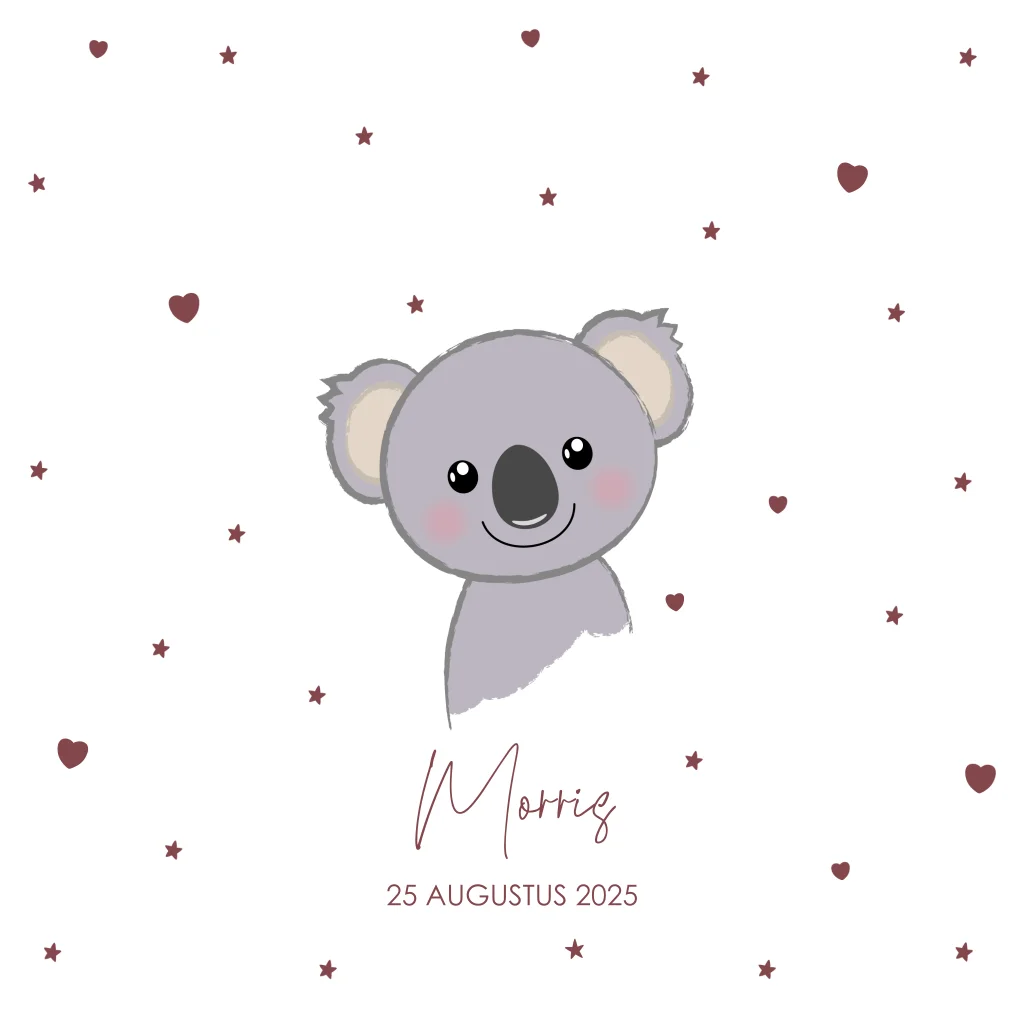 Geboortekaart neutraal sterren en lief koalabeertje Morris