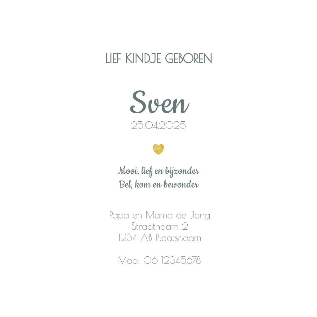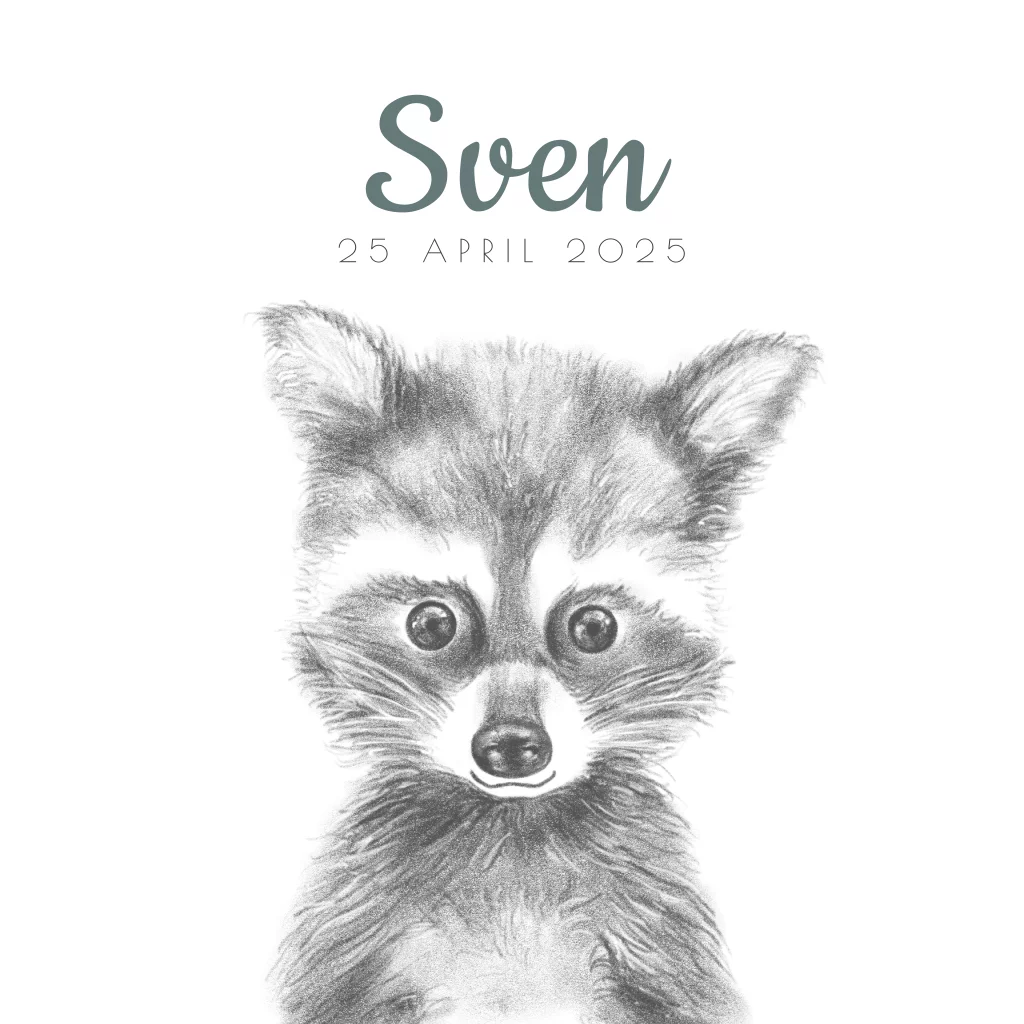 Geboortekaart potloodtekening schattig wasbeertje Sven