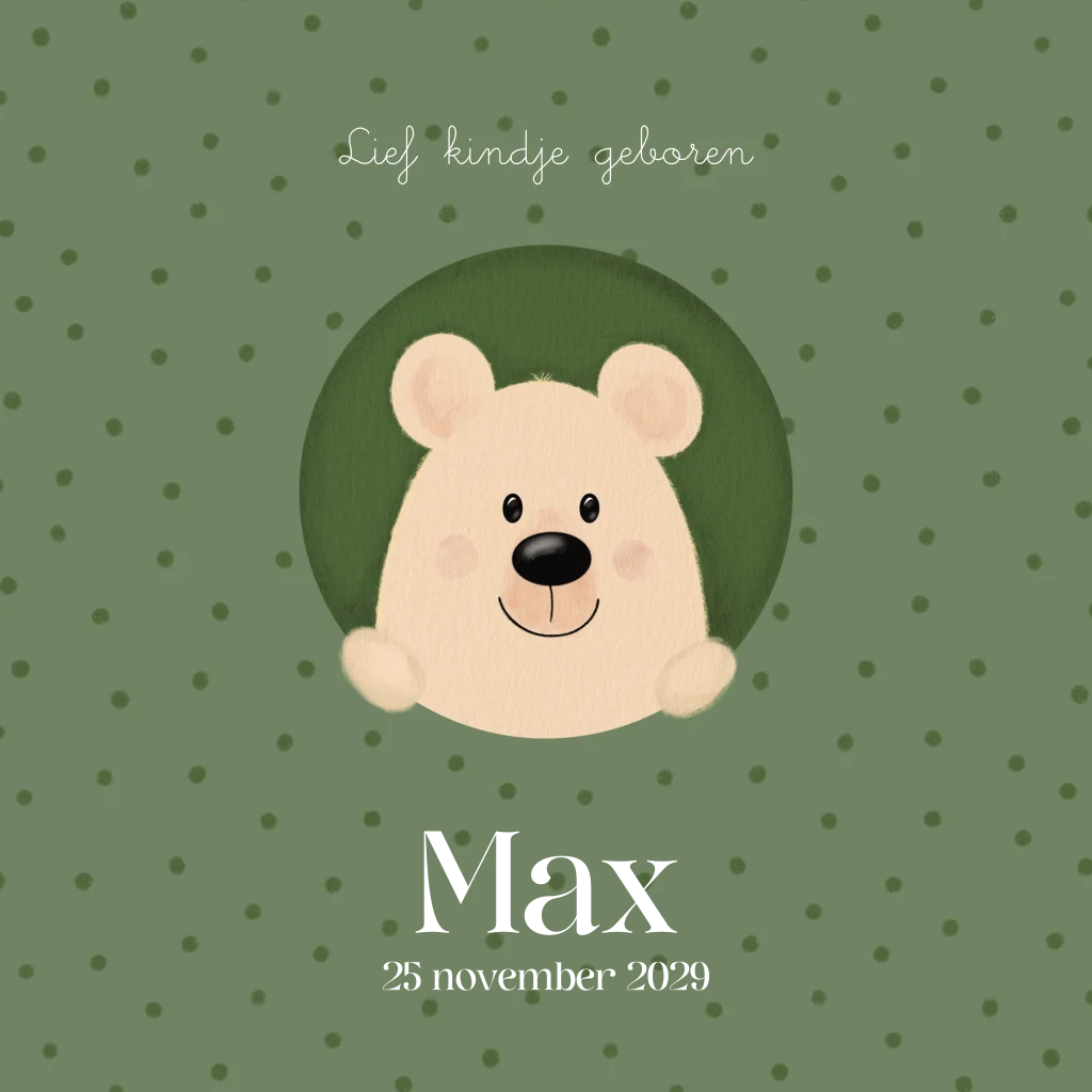 Geboortekaartje beer groen met stippen en goudfolie - Max