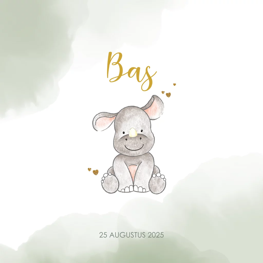 Geboortekaartje jongen lief neushoorntje hip en trendy
