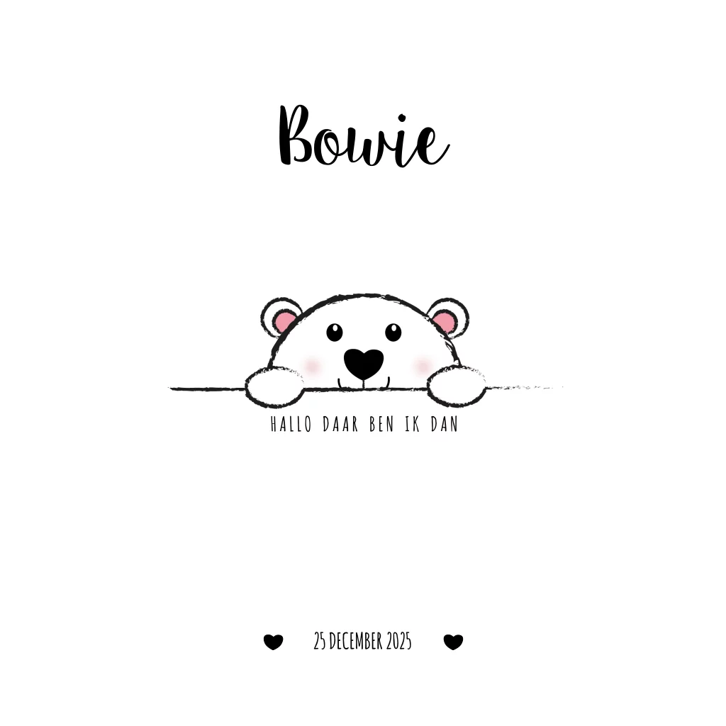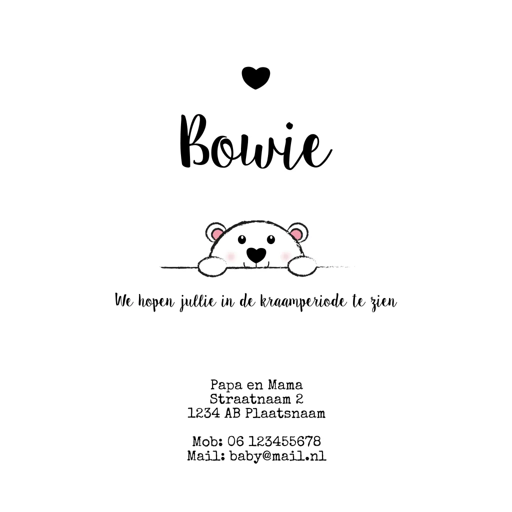 Schattig geboortekaartje zwart-wit met een lief ijsbeertje Bowie