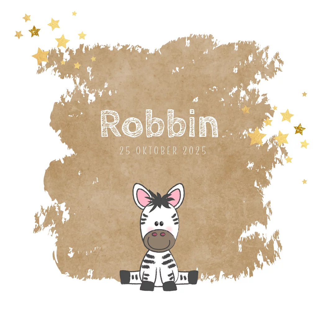 Geboortekaartje stoer en lief kaartje kraft-look met een zebra Robbin