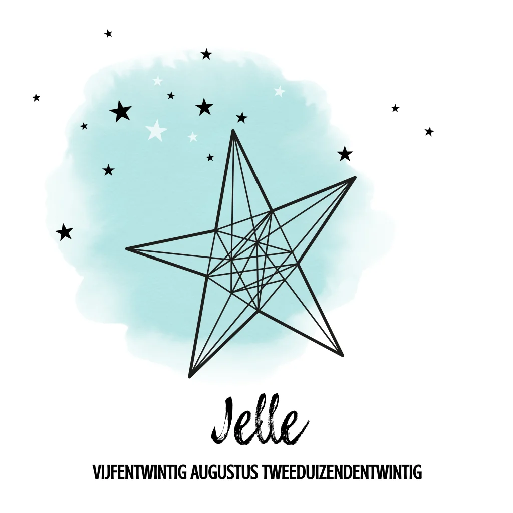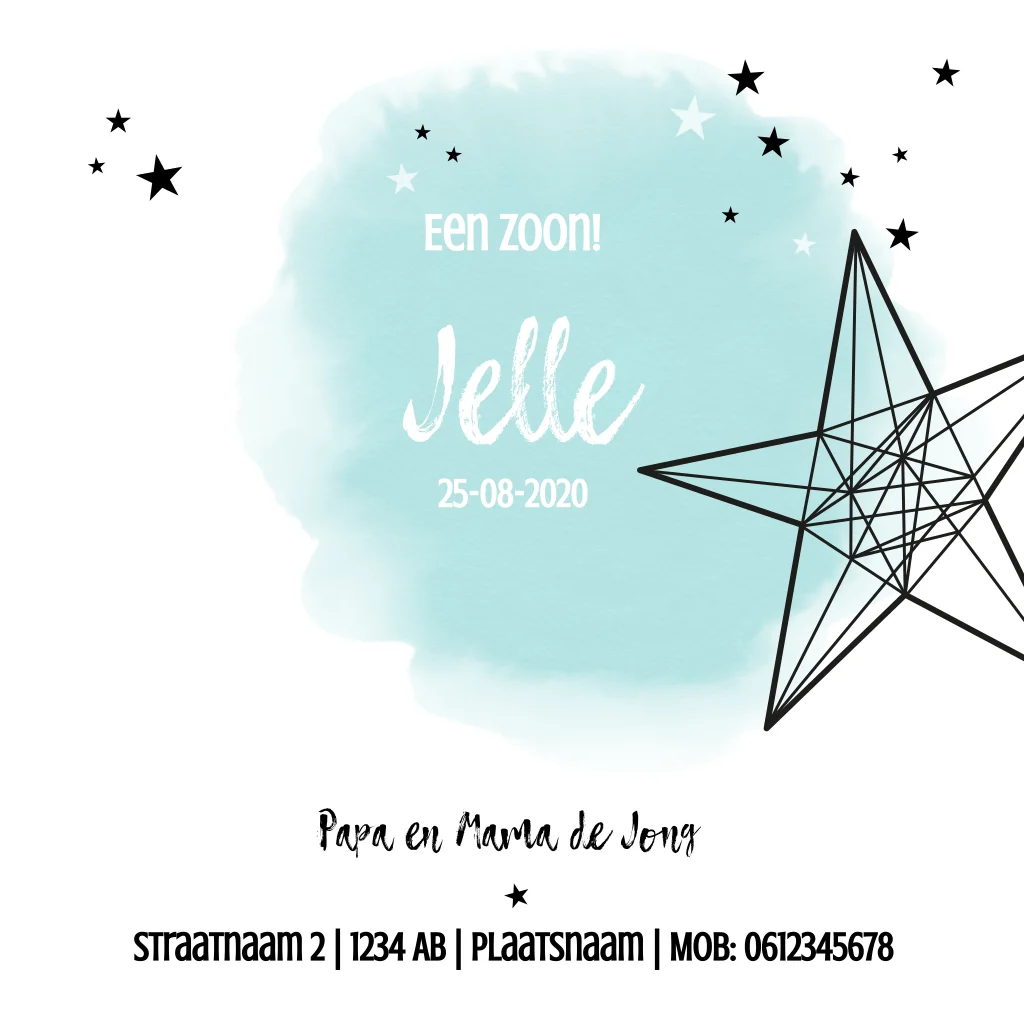 Stoere geboortekaart waterverf en geometrische ster Jelle