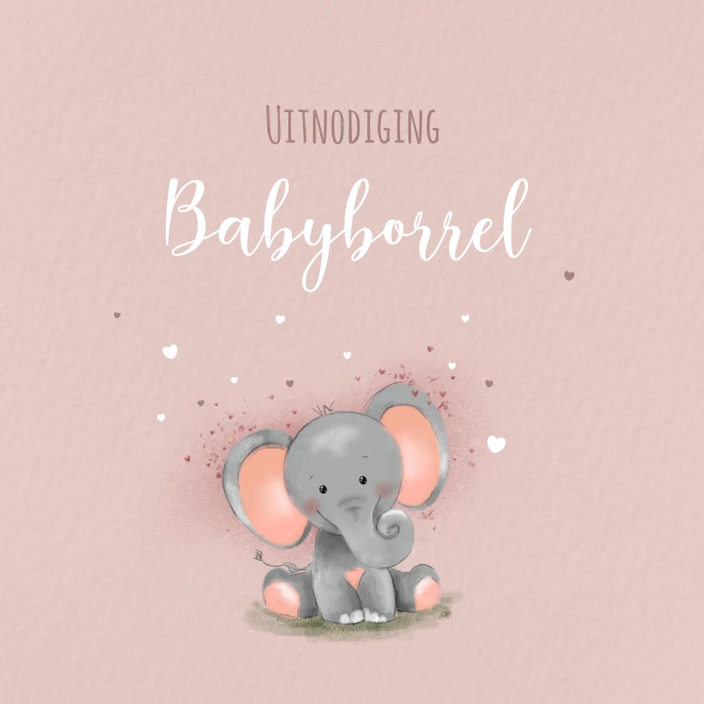Kraamborrel kaart met olifantje in zachte oudroze tinten