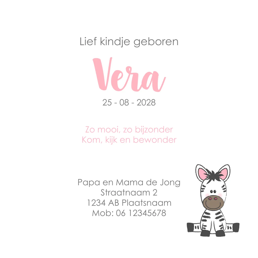 Schattig geboortekaartje meisje grijze strepen en lieve babyzebra