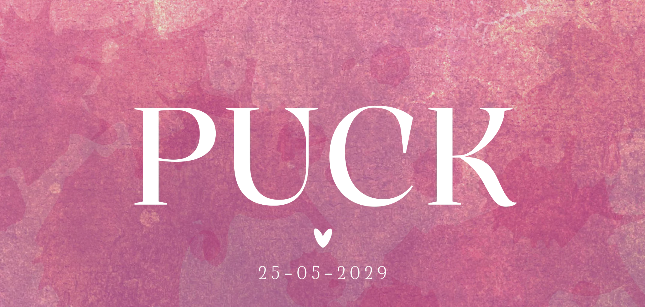 Geboortekaartje Puck is een echte eyecatcher: minimalistisch, maar met een krachtige uitstraling. De warme roze achtergrond met fijne structuur en de grote naam in goudkleur maken dit kaartje stijlvol en modern. Onder de naam staat een klein hartje – een liefdevol detail dat het ontwerp net dat beetje extra geeft.