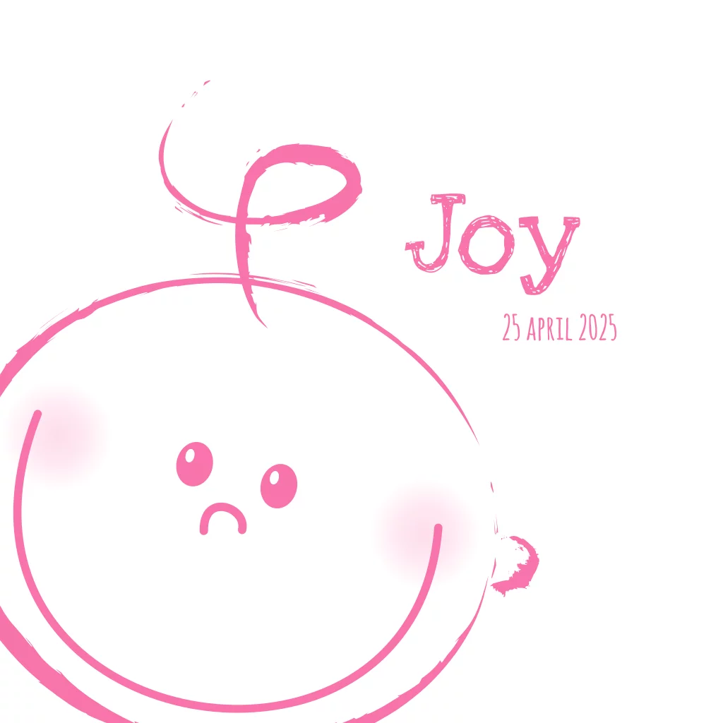 Geboortekaartje met een getekend lief baby gezichtje Joy