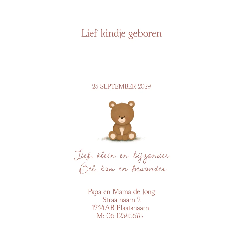 Bella hoort bij de collectie Lieve Dierenvriendjes van Heidysign – herkenbaar aan de zachte illustraties en knuffelbare diertjes. Pas het kaartje eenvoudig aan met jullie eigen naam en geboortedatum en bestel een proefdruk om het kaartje in het echt te kunnen bewonderen.