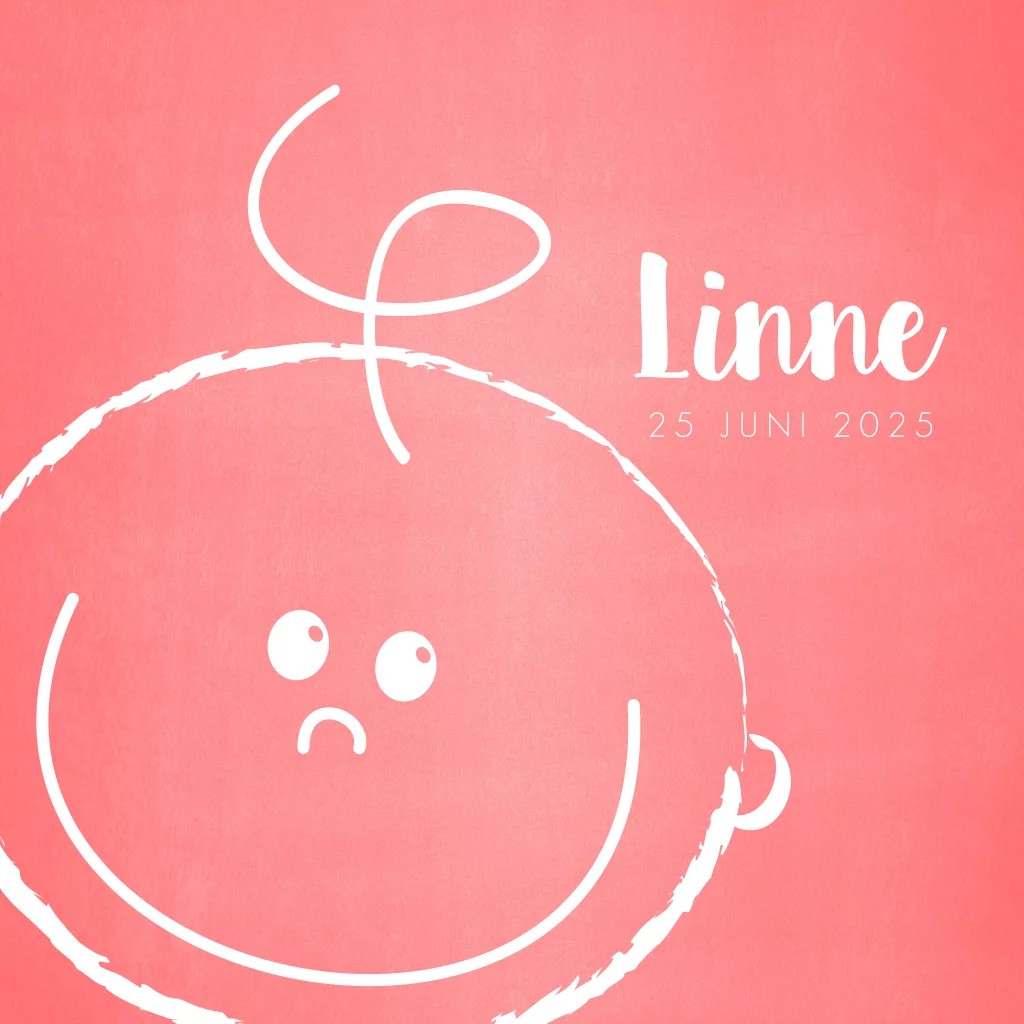 Geboortekaartje meisje met schattig baby gezichtje Linne