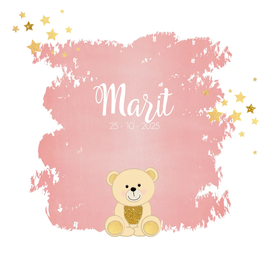 Geboortekaartje roze hip lief beertje en sterren Marit