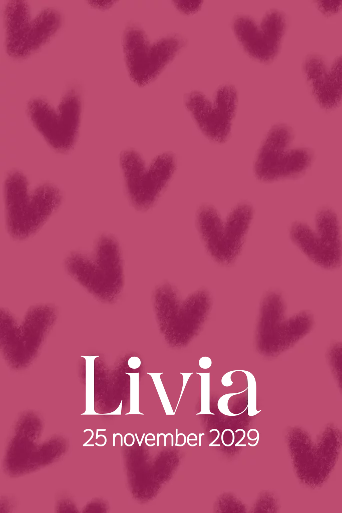 Dit trendy geboortekaartje straalt warmte en speelsheid uit, met een opvallende roze achtergrond en een patroon van hartjes in een rijke, kersenrode tint. Perfect voor de geboorte van een meisje, biedt dit ontwerp een unieke mix van vrolijkheid en stijl. De naam en geboortedatum worden in goudfolie op de voorzijde gedrukt, wat het kaartje een luxe uitstraling geeft. Het ontwerp is volledig aanpasbaar, zodat het helemaal naar wens kan worden gemaakt. Bovendien is het mogelijk om een proefdruk te bestellen, zodat je zeker weet dat het kaartje perfect is!
