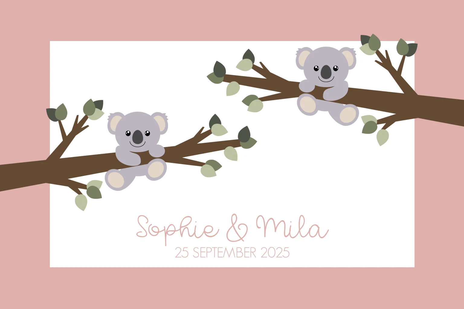 Schattig geboortekaartje tweeling meisjes met lieve koalabeertjes