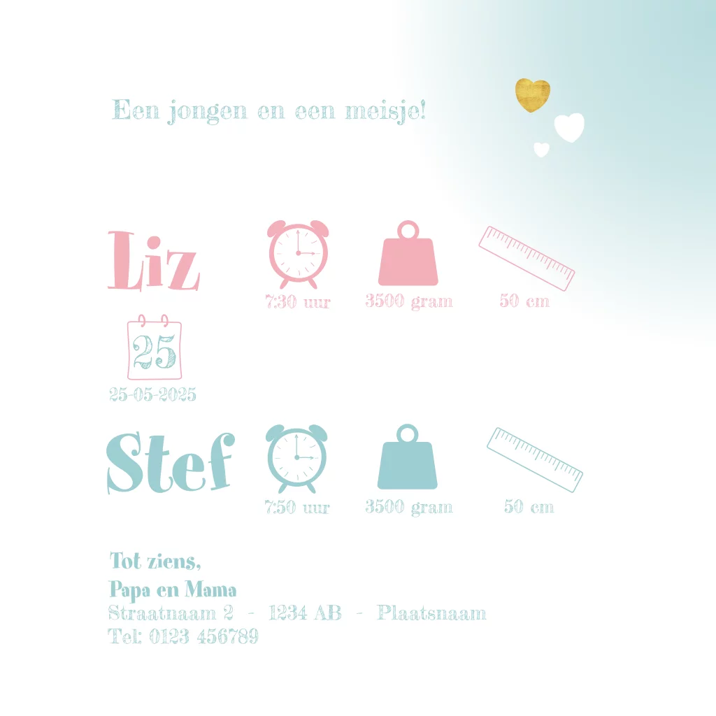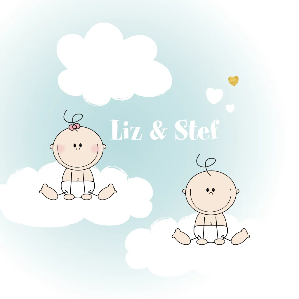 Lief geboortekaartje tweeling in de wolken Lizz en Stef