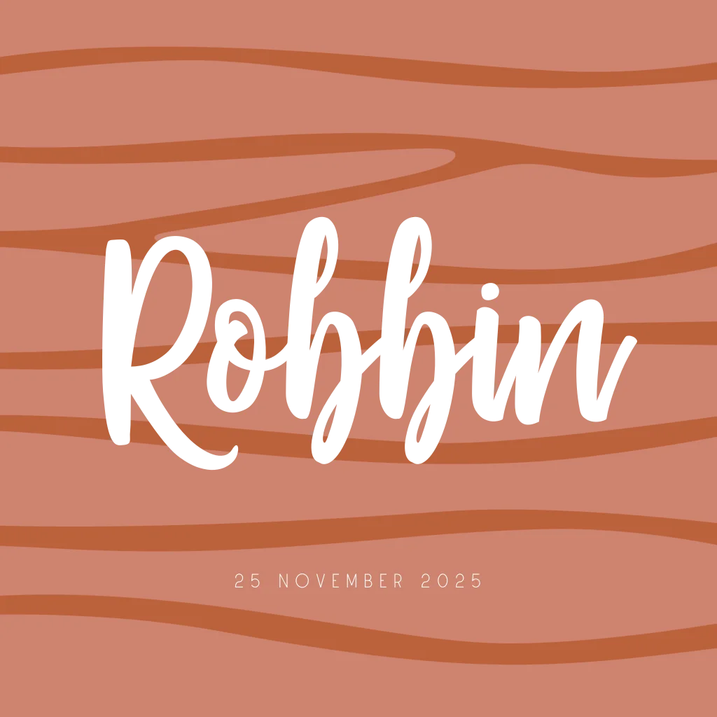 Trendy en luxe, uniseks geboortekaartje met een terra kleurige zebraprint en de naam van jullie kindje bedrukt met goudfolie. De kaart heeft een stoere look en is met zijn folie bedrukking een echte stoere, maar ook een luxe en stijlvolle geboortekaart.