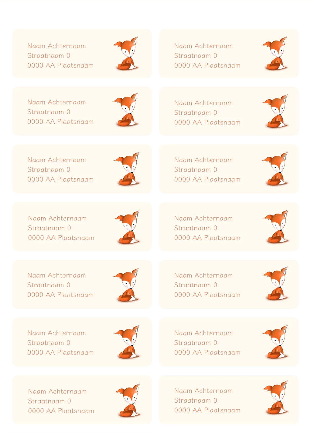 Maak jullie geboortepost van jullie kindje extra bijzonder met een adressticker op de envelop in de stijl van het geboortekaartje. Deze aanpasbare sticker heeft een tekening van een lief vosje.